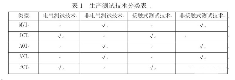 目前在電子組裝測試領(lǐng)域中使用的測試技術(shù)種類繁多,常用的有人工目視檢查(Manual Visual Inspection,簡稱MVI)、在線測試(In-CircuitTester,簡稱 ICT)、自動光學(xué)測試(AutomaticOptical Inspection,簡稱 AOI)、自動 X 射線測試(AutomaticX-ray Inspection,簡稱AXI)、功能測試(Functional Tester,簡稱 FCT)等。